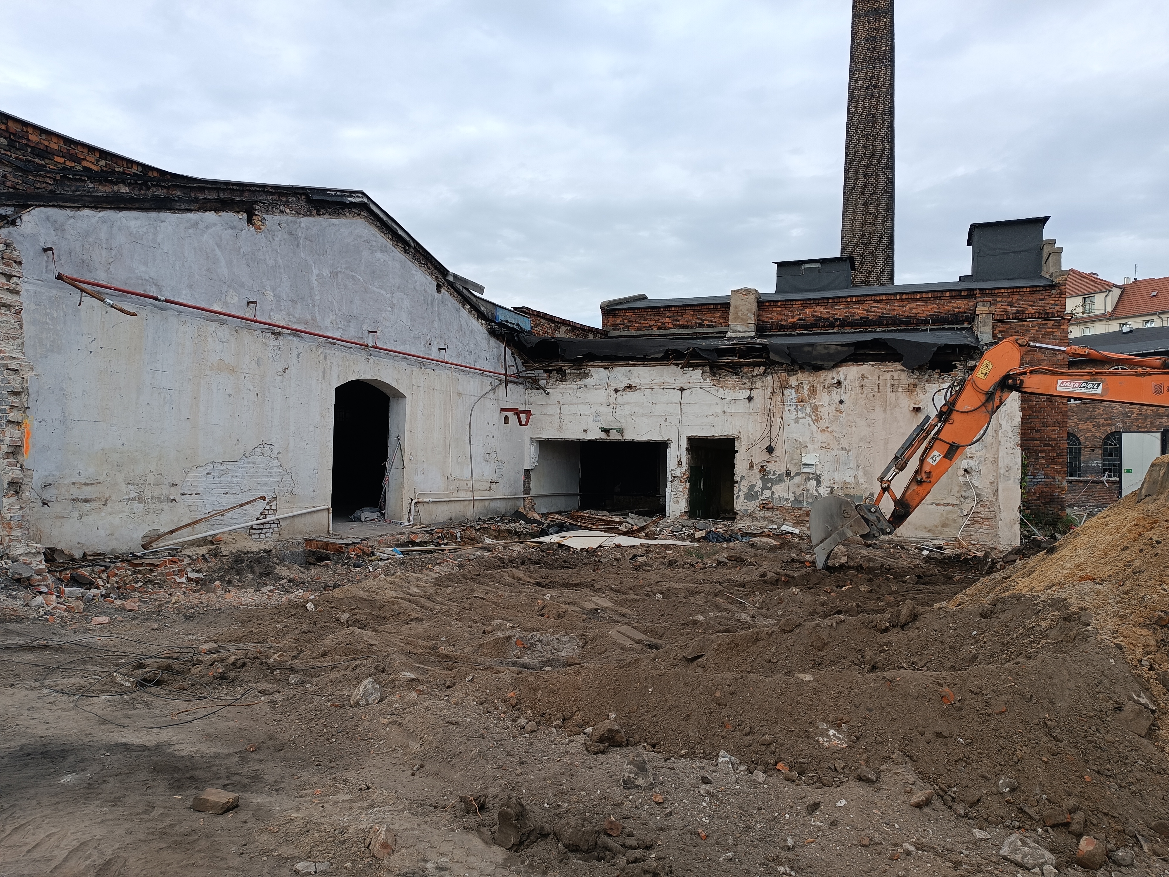 - Rozpoczęliśmy prace nad fundamentami pod podparcie ceglanych ścian budynków zabytkowych, co zabezpieczy je przy następnych etapach wyburzeń.
